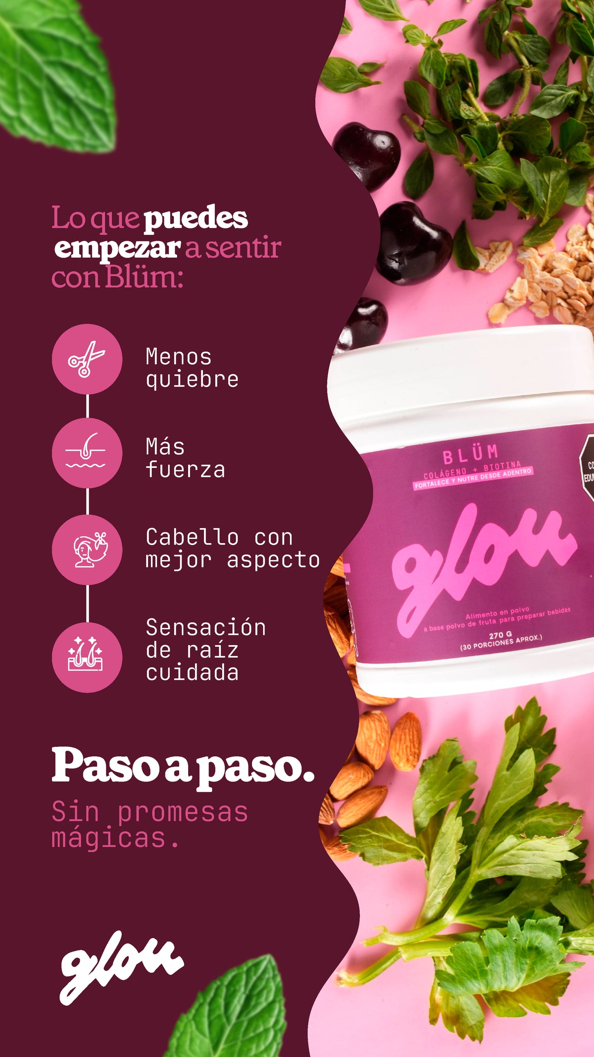 - Blüm es un suplemento alimenticio, no es un medicamento y no pretende diagnosticar, tratar ni curar enfermedades.