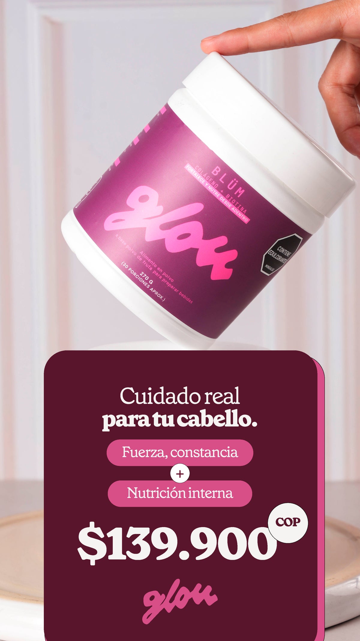 Blüm no es “otra vitamina para el cabello”. Es un shot diario que combina colágeno, biotina, zinc, vitaminas y extractos botánicos para fortalecer tu melena desde la raíz.